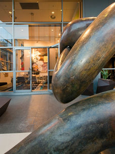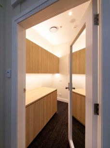 Situated on the top floor of a central city commercial building, this is really a gallery space with an office in it. Designed for the owner’s extensive contemporary art collection, it has a high white daylit gallery space juxtaposed with a lower, darker and more dramatically lit entrance and boardroom area. Both areas open out to a large roof terrace with sculpture installations.